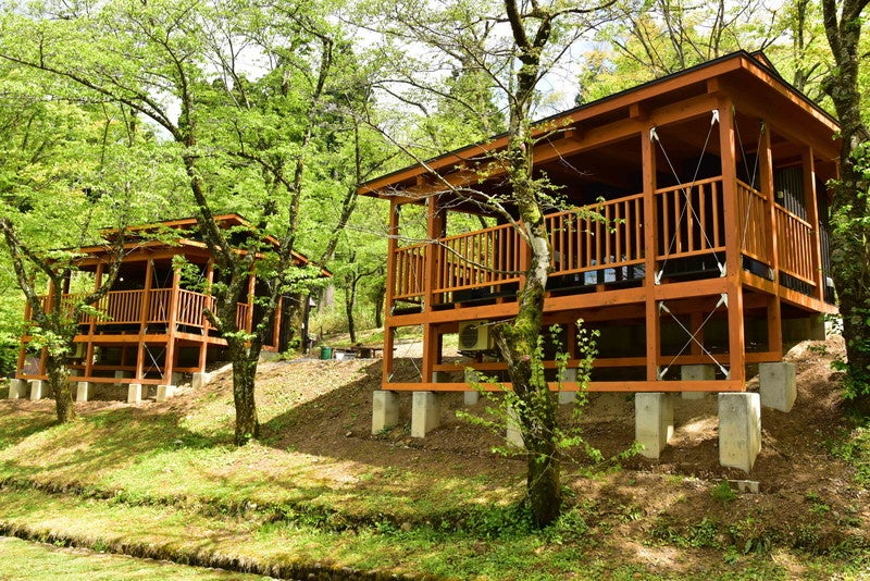 宿泊エリアに新宿泊棟「キャビン」2棟がオープン。ミニキッチン、シャワー、トイレを備え、6名様まで宿泊可能です。また、宿泊棟ご利用のお客さまはバーベキューハウスでのバーベキューを夜間もご利用いただくことが出来ます。森でのより充実したひと時をお過ごしください。