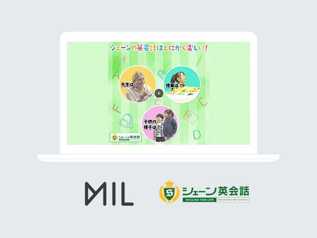 シェーンコーポレーションは、過去40年間のノウハウから生み出された独自のカリキュラムと選抜された講師陣による、質の高い英会話教育を提供し続けています。同社では、コロナの影響を受けて大人層の集客が難しくなりターゲットを変更。新しいターゲットとして据えた「子ども層」の集客に課題を抱えており、Webサイトから無料体験のお申し込みを増やすためのアプローチとして、インタラクティブ動画マーケティング「MIL」を導入いただきました。