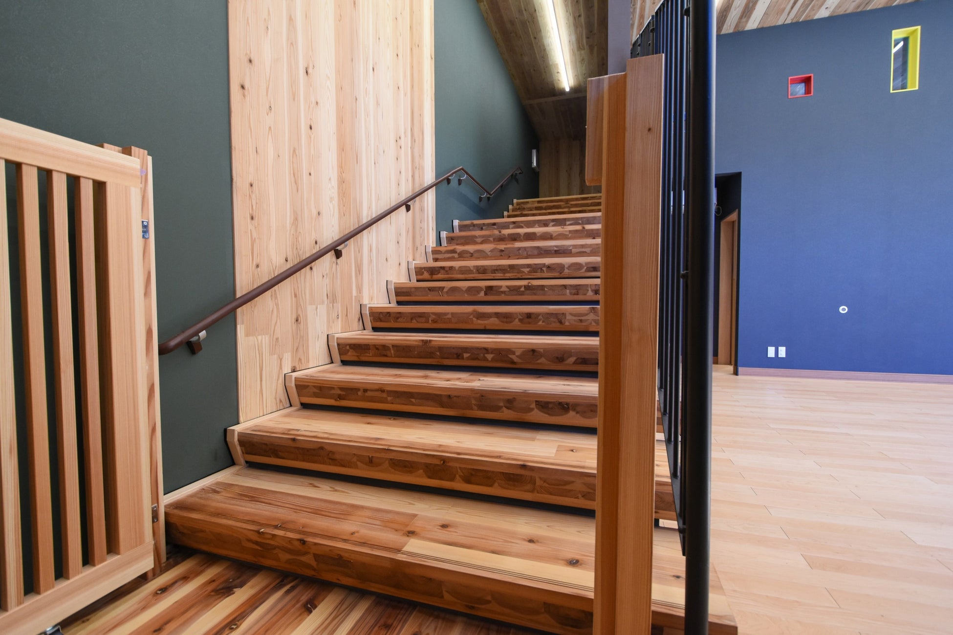 CLTの仕様:壁(120mm厚/5層5プライ/S60A/スギ)・階段(120mm厚/3層4プライ/Mx60A/スギ)・屋根(150mm厚/5層5プライ・90mm厚/3層3プライ/S60A/スギ)
