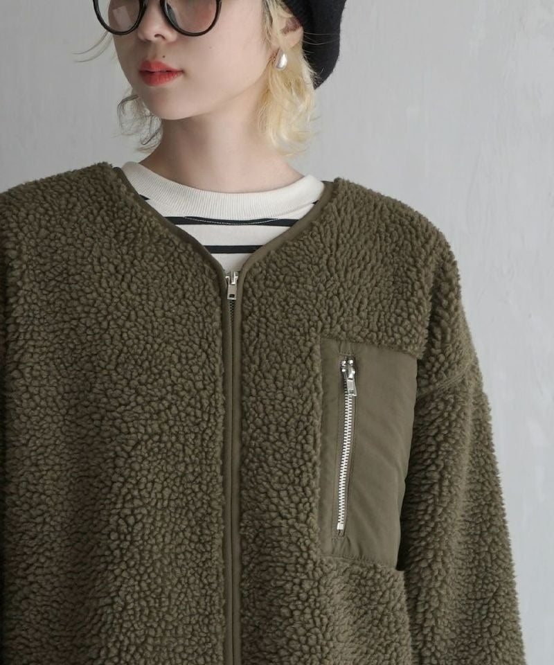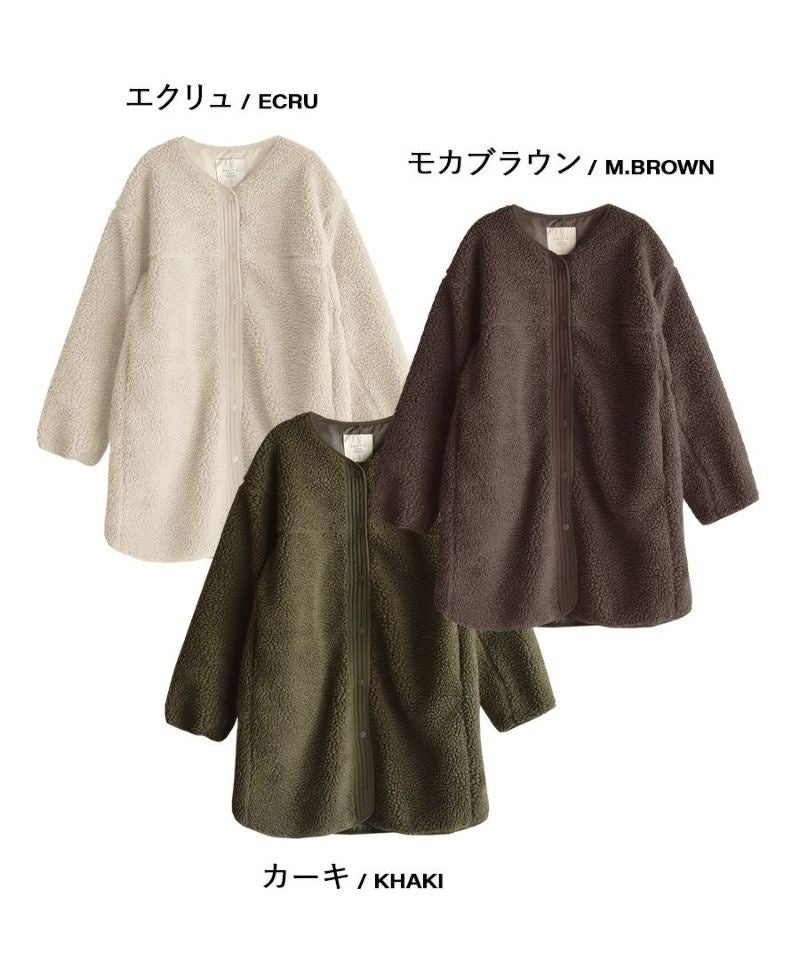 カラーはエクリュ、モカブラウン、カーキの3タイプ。大人っぽさを漂わせながらどんな服にも合わせやすいのがポイントです。ボア部分はふんわりと心地よい肌ざわり。凹凸部分に空気をたっぷり含んで空気の層ができるため、上から羽織るだけで驚くほどの暖かさです。