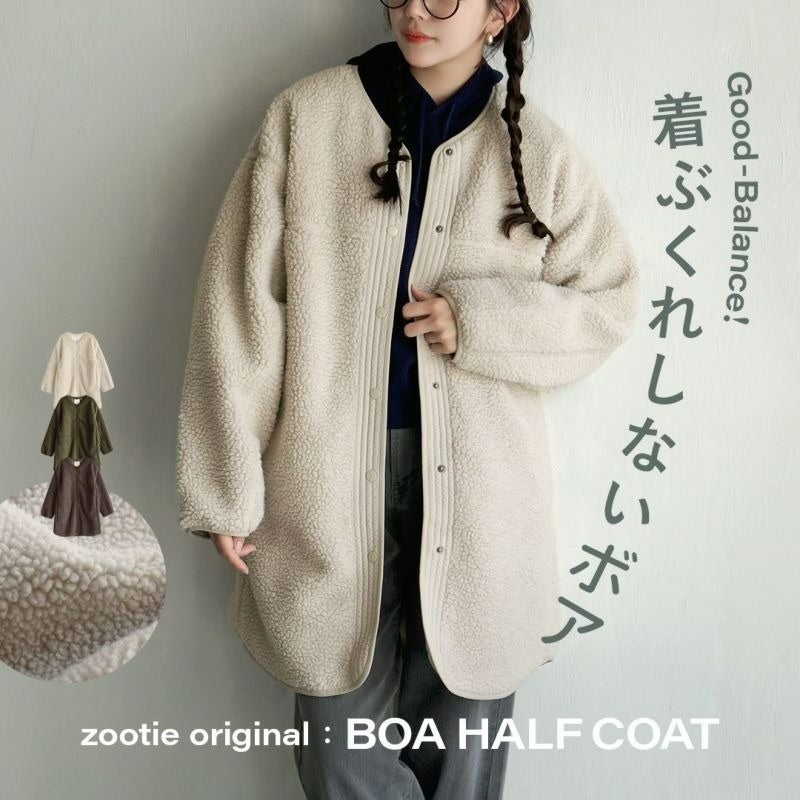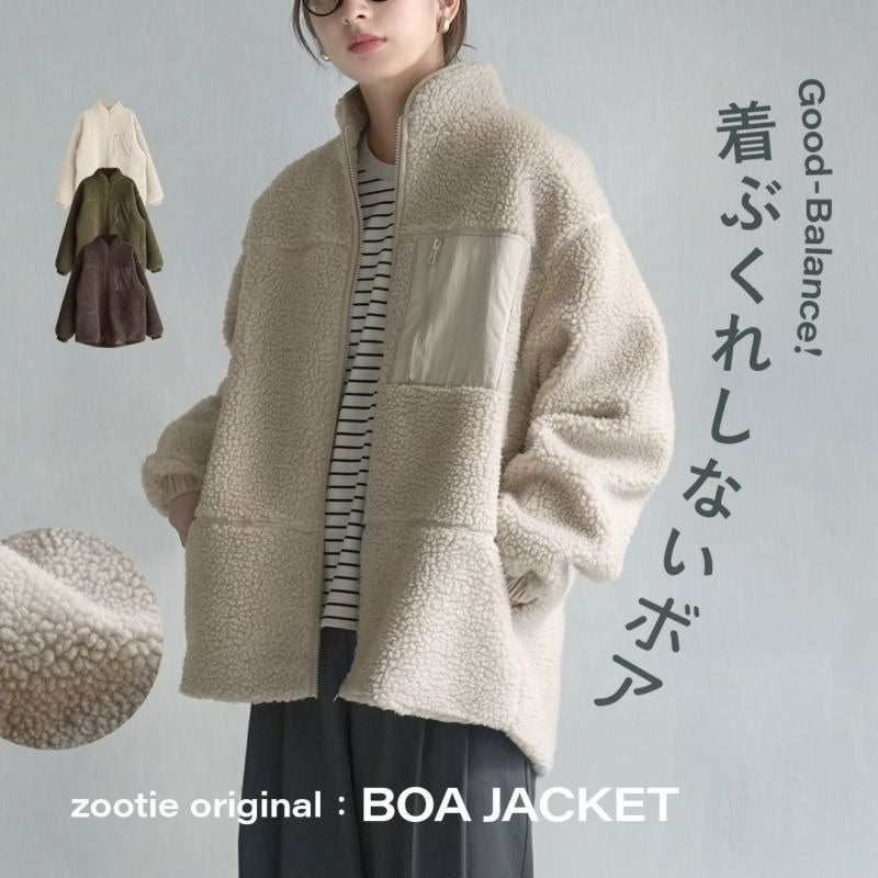 自社で洋服の企画から開発・販売までを一貫して行う私たちは、かわいくて機能的なポテンシャルも大きなボアアウターを、もっとおしゃれに着て欲しい、もっとたくさんの方にボアアウターの魅力を知って欲しいという純粋な想いから、自社ブランド「zootie(ズーティー)」のオリジナル商品として、着ぶくれせずスタイル良く見える「Good-Balance ボアアウターシリーズ」を開発いたしました。