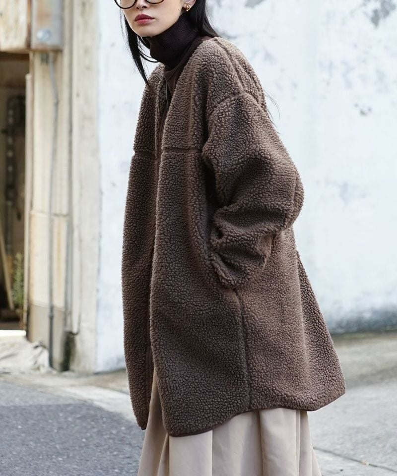 モコモコかわいくて暖かい冬の定番服・ボアアウター。「着ぶくれしてしまう」「着たときのバランスが悪く見えてしまう」といった従来のボアアウターの最大の欠点を、肩幅と身幅の黄金比率のバランスで解決しました