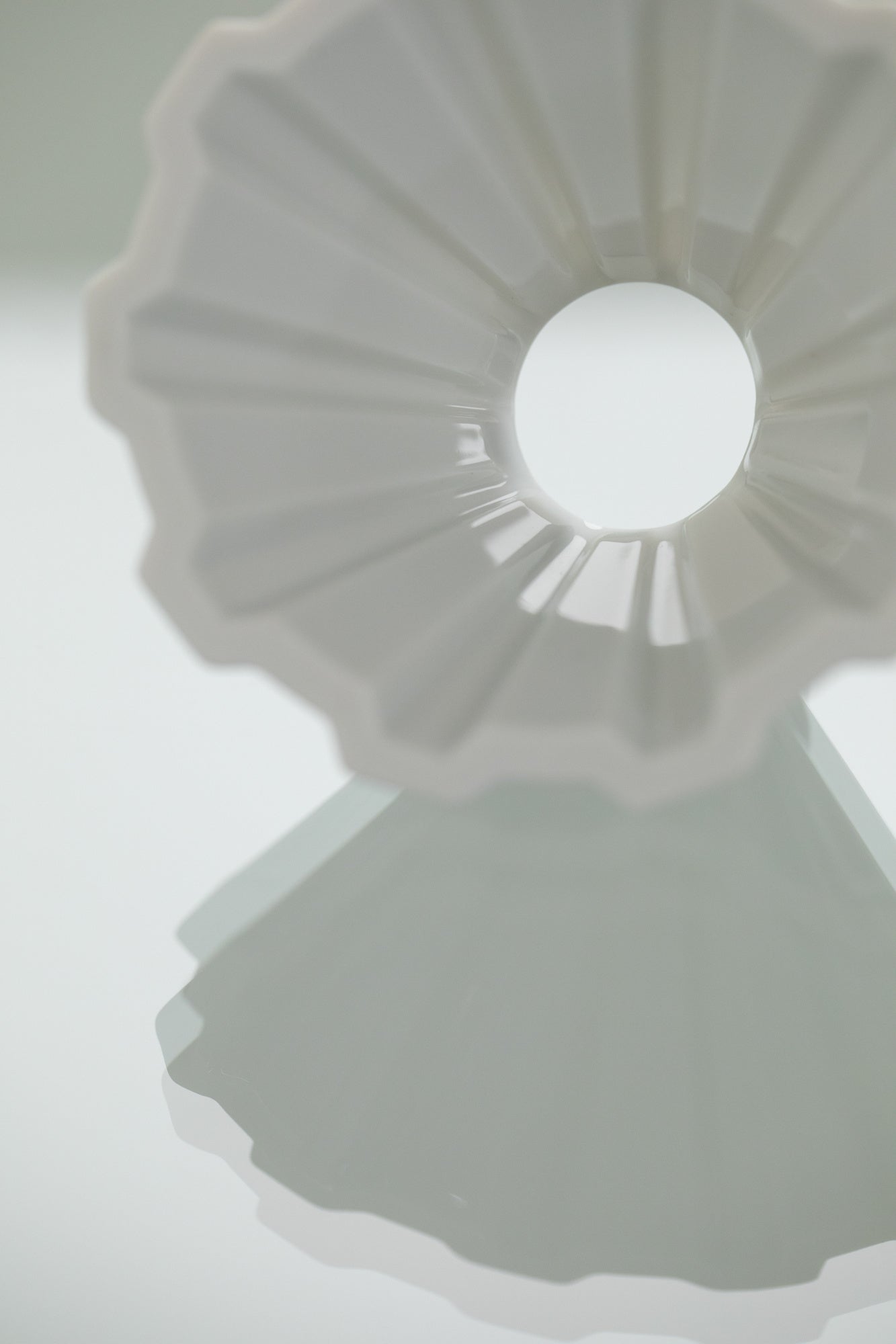 扇形のリブが10本。適度に空気の逃げ道が生まれ、ウォーターフローの速度が促されることで、目詰まりしづらい設計です。また、凹凸の溝と面のバランスを考慮し設計したことで、ドリッパーにフィルターを安定してセットすることが可能です。