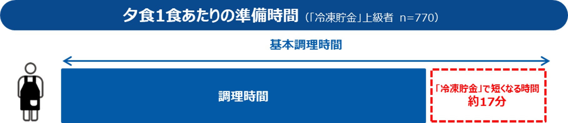 ✔ 時間が貯まる:「冷凍貯金」による、平日夕食の平均時短時間:「冷凍貯金」上級者 約17分