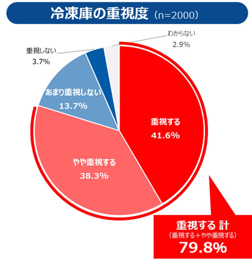 ✔ 冷凍庫の重視度:「次に冷蔵庫を買うなら、冷凍庫の機能や容量を重視する」人は、約8割