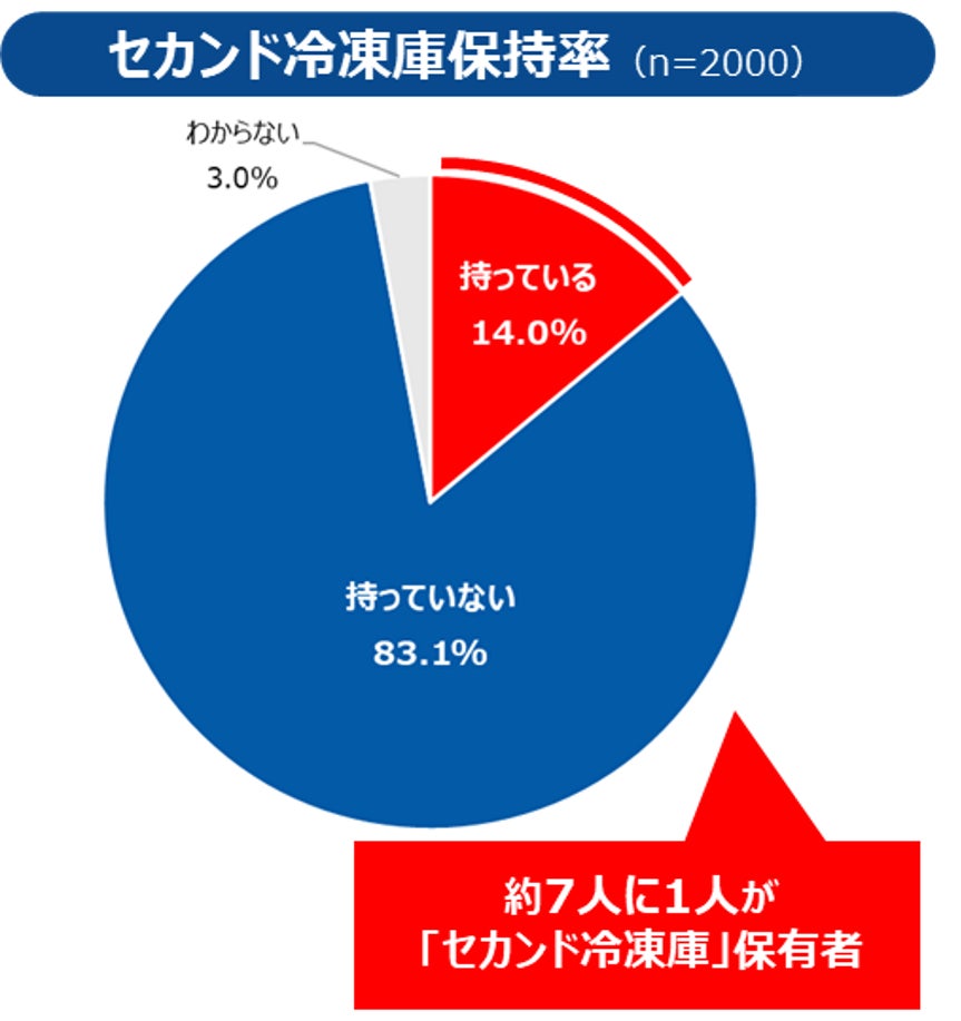 ✔ セカンド冷凍庫の保有率:14.0%(約7人に1人)が「持っている」と回答