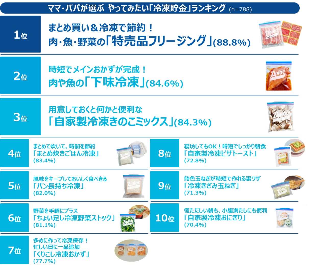TOPIC❹:ママ・パパ支持「冷凍貯金」ランキング 1位は、まとめ買いして節約できる「特売品フリージング」