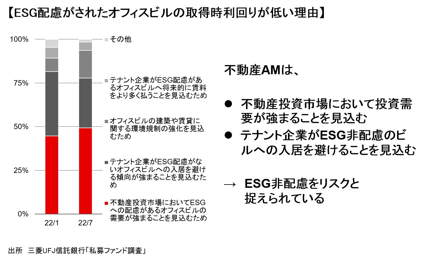 - 不動産AMはESG非配慮が不動産投資のリスクプレミアムを高めることを想定している。