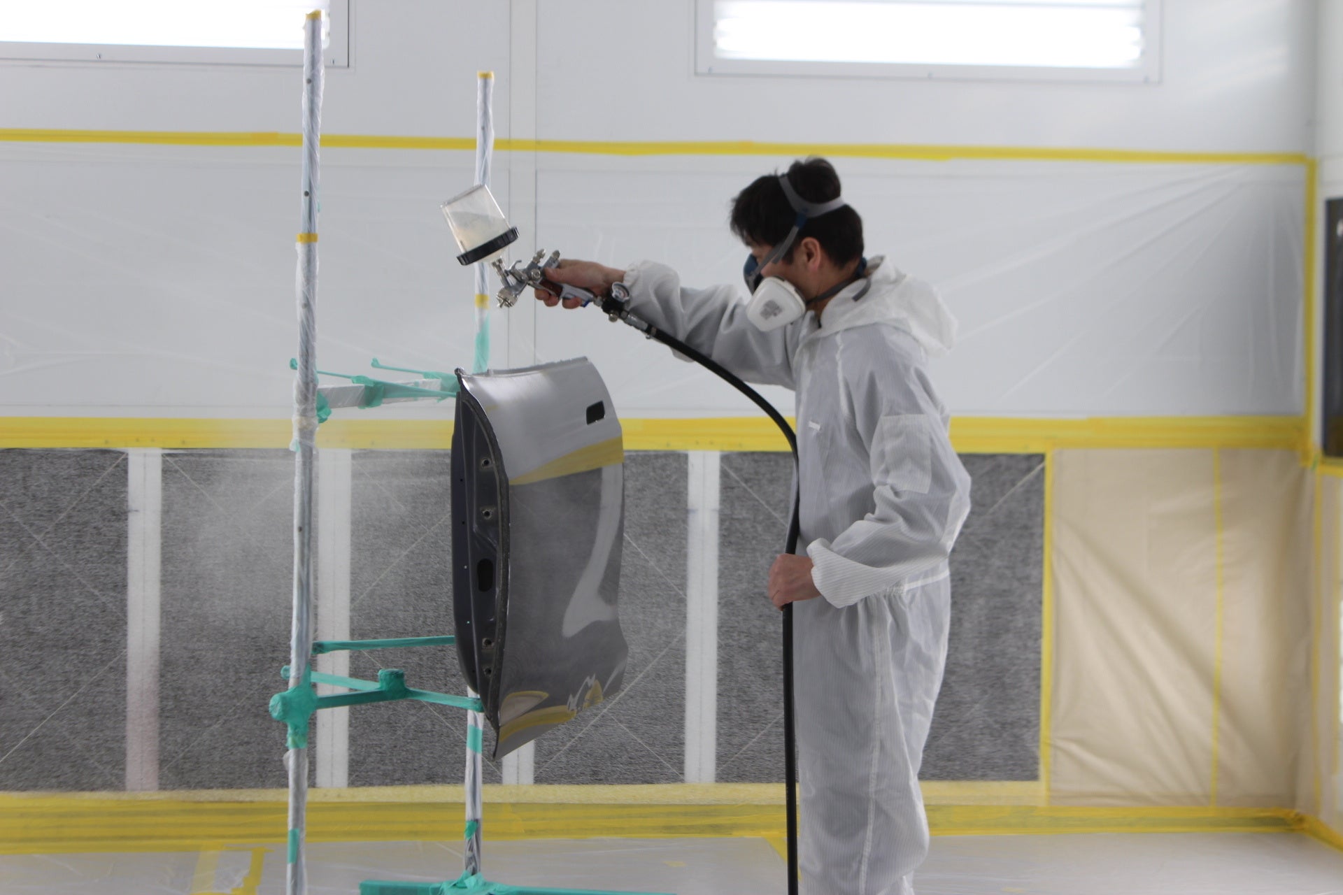 水性塗料を使った塗装実演コーナーです。今回は5社が特設の塗装ブースにて実演を行います。