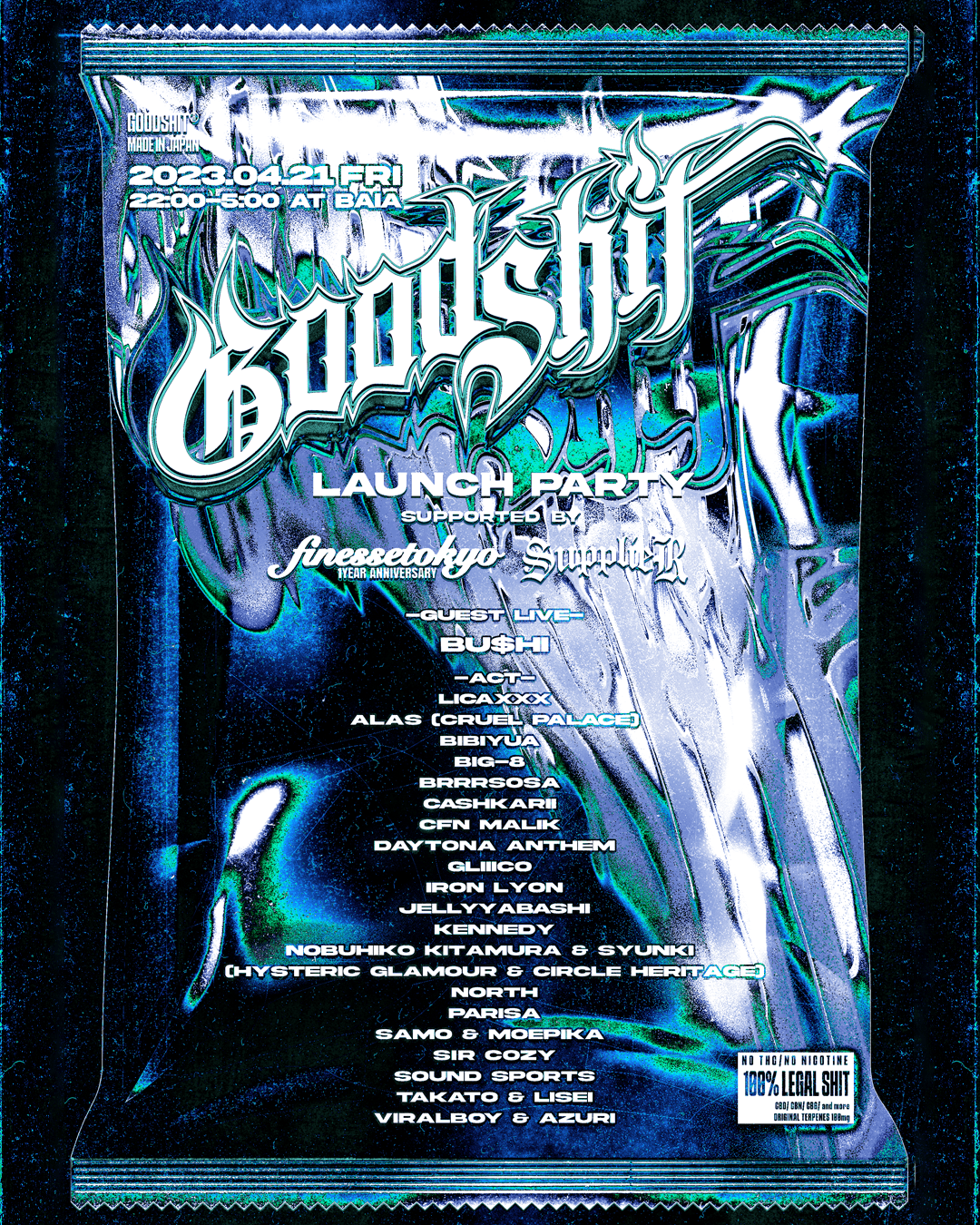 グローバル規模でユースファッションを牽引するSUPPLIERとインターナショナルなパーティーを展開するFinesstokyo、そして会場となるCLUB BAIAによる特別サポートで未だかつて開催されたことのないであろう、限りなくリアルな420PARTYをお楽しみいただけます。