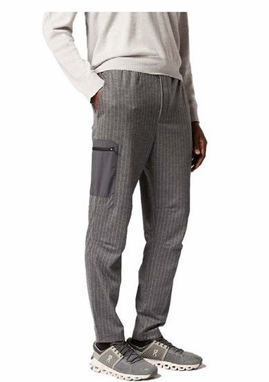 ピンストライプのヴァージンウールとナイロンブレンドのジャージー素材を使用し、スポーティーでありながらもどこか都会的な雰囲気が目を惹くデザイン。抜群の伸縮性と着心地で大人のラウンジウェアとしても重宝します。