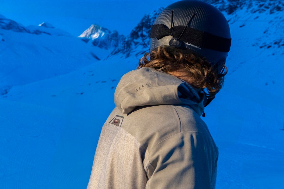 希少性の高い無染色カシミヤ100%素材にラミネート加工を施し、3層構造の高性能メンブレンを使用。耐水性と防水性がありながらも通気性が保たれ、本格スキーウェアさながらの機能性が特徴です。
