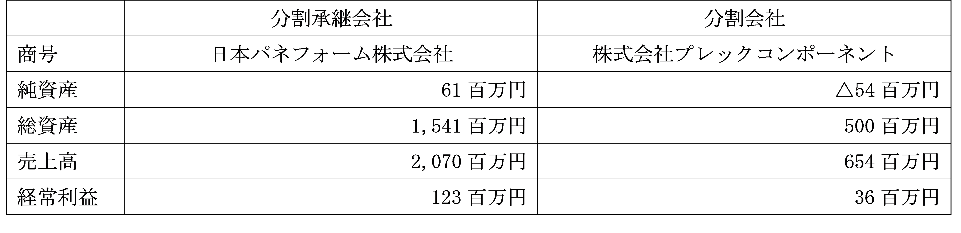 プレックを分割会社とし、日パネを分割承継会社とする吸収分割を実施いたします。