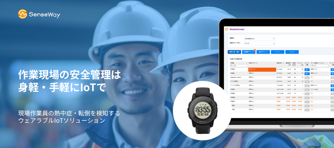 センスウェイは長距離通信を低消費電力で行えるIoTに最適な無線通信規格であるLPWA(Low Power Wide Area)のLoRaWAN®を使ったIoTプラットフォームを提供しています。IoT技術によるデータ活用により、建設業向けソリューションや企業のデジタルトランスフォーメーションを推進しています。センスウェイの持つLoRaWAN®の技術力をもとに、IoT通信プラットフォームサービス「SenseWay Mission Connect」や安全管理(熱中症対策や転倒検知)ソリューション「ワーカーコネクト」などを提供しています。