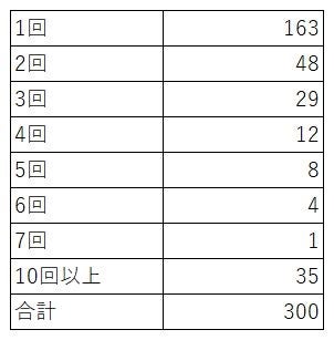 消費者金融を利用した回数の第1位は「1回」、第2位は「2回」、第3位は「3回」という結果になりました。約54.3%の方が消費者金融の利用が1回のみとなっています。