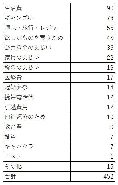 消費者金融利用者300名に借入金額や利用回数、使い道、返済状況などを調査