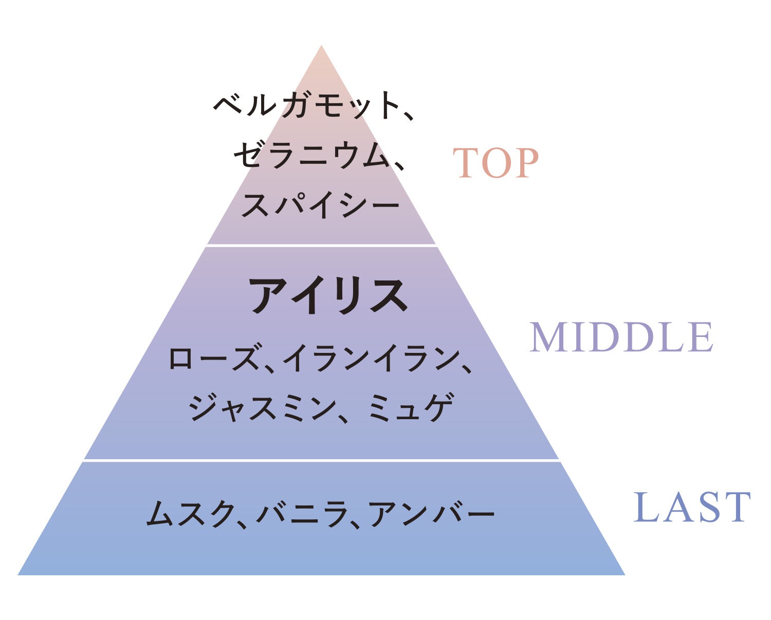 幾重にも重なる華やかな花々を、やわらかく香るパウダリーなアイリスが贅沢に包み込む、甘美な香り。心ほぐれるひとときを。