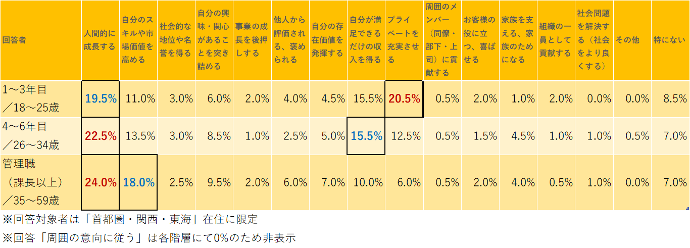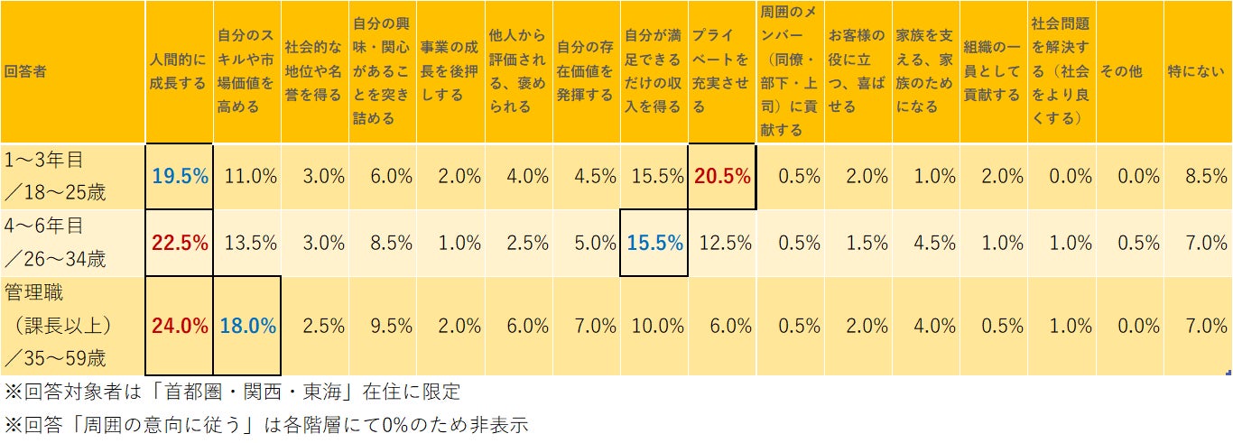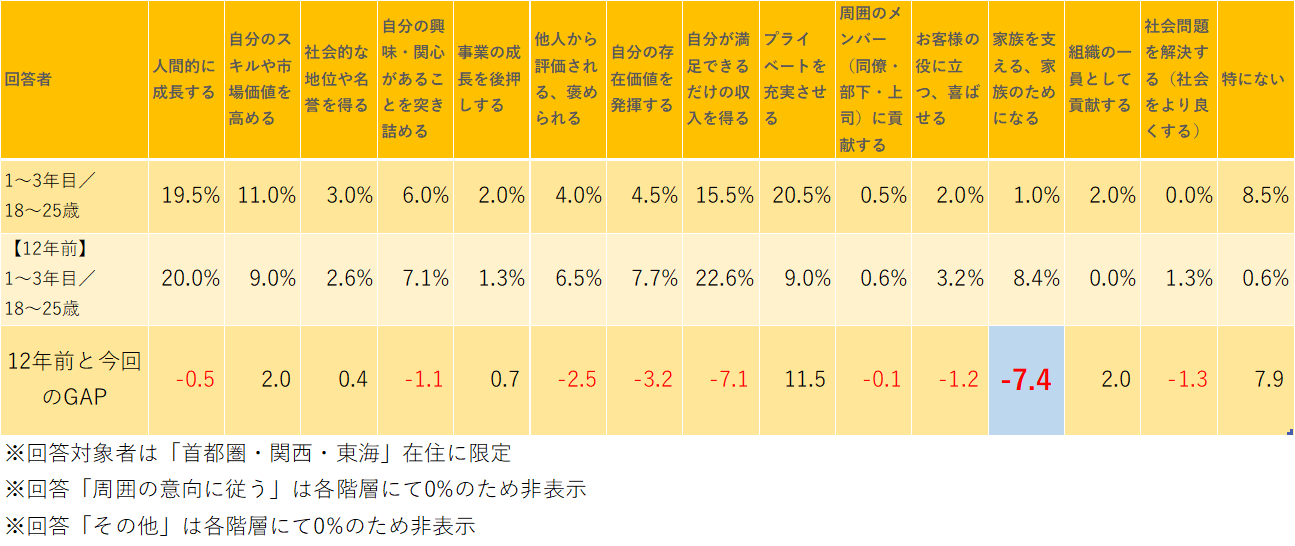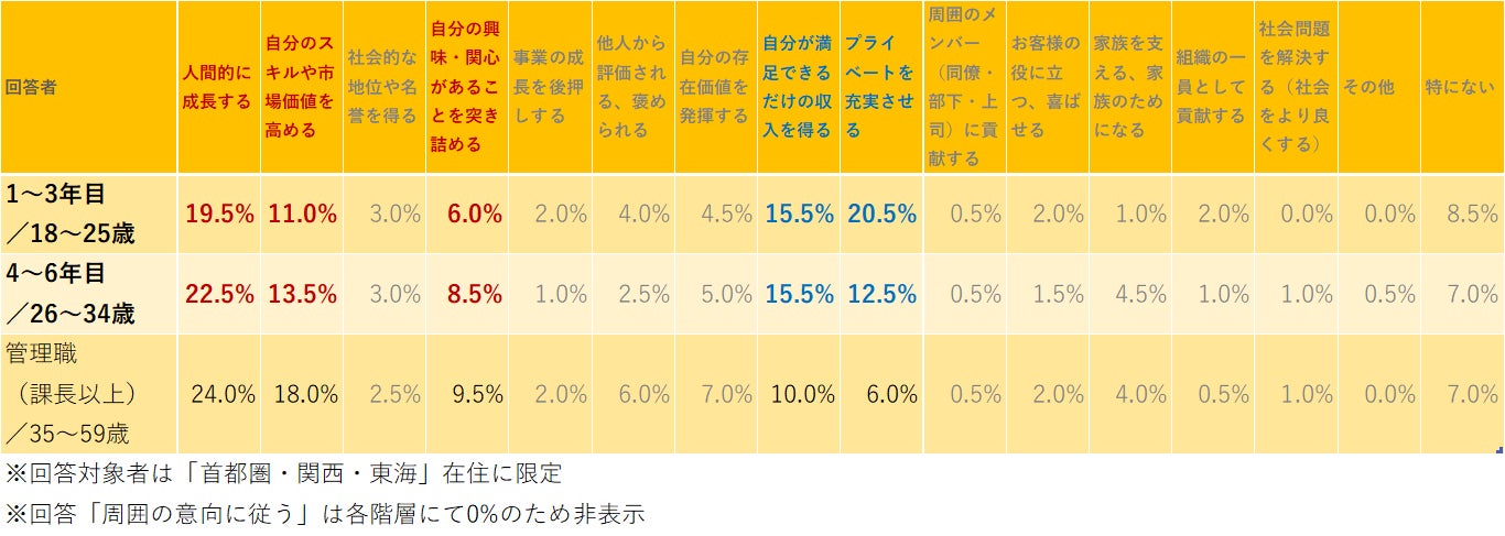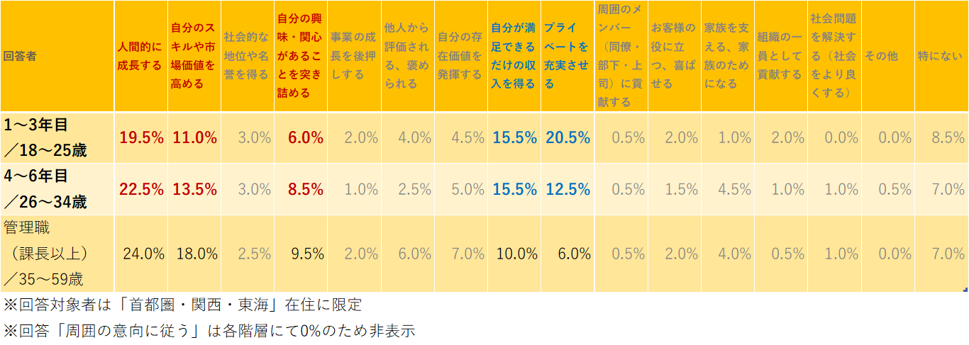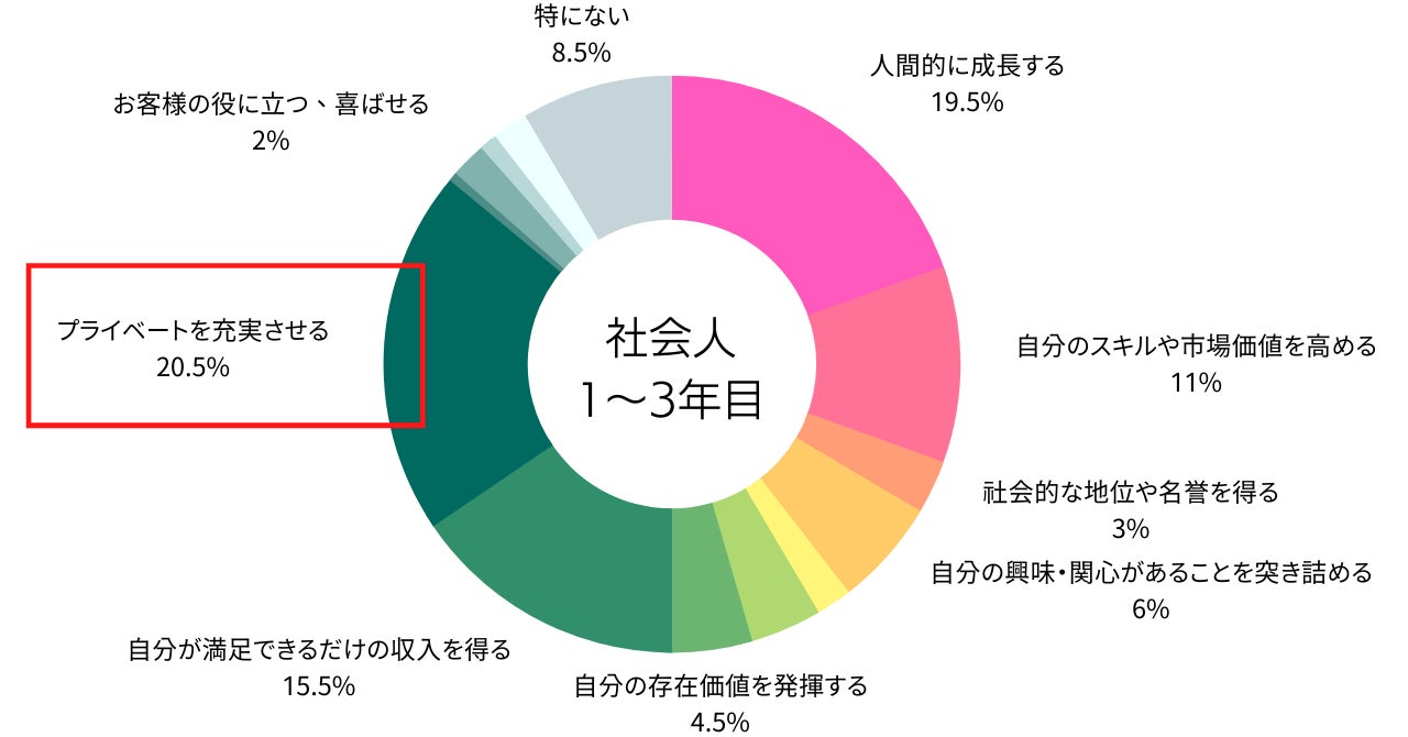 ・社会人1~3年目(18~25歳)の1位:プライベートを充実させる