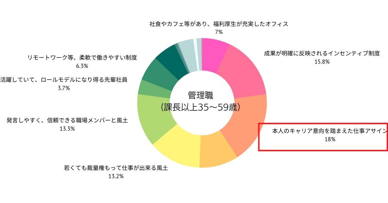 ・管理職(課長以上35~59歳)の1位:本人のキャリア意向を踏まえた仕事アサイン