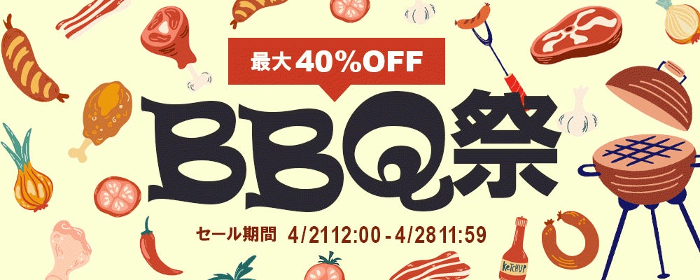 この度、GWにBBQをお楽しみいただけるお得なセール、『BBQ祭』を開催いたします。4月21日(金)12:00から4月28日(金)11:59までの1週間限定で、人気の「ポークバックリブ」など全30商品を、通常価格から最大40%オフでご提供いたします。