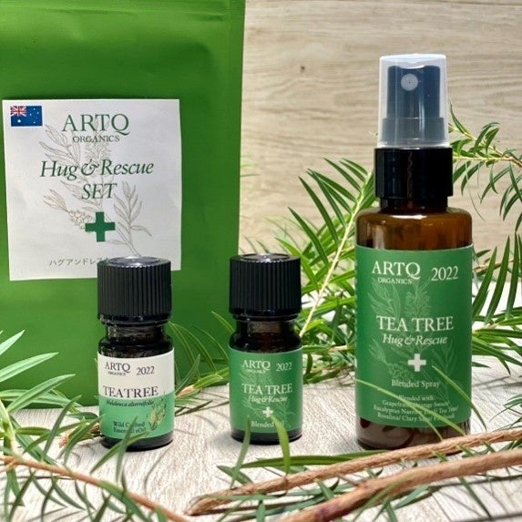 オーストラリアにあるティートリーのオーガニック認証契約農家から届いた、鮮度の高いフレッシュグリーンな<Tea Treeティートリー>をより香り高く、そして使いやすいアイテムとして、みなさまに寄り添い、そしてご自分と大切な人を守るための香りとして活用できることを願い「Hug & Rescueハグ&レスキューオーガニックブレンド」をお届けします!