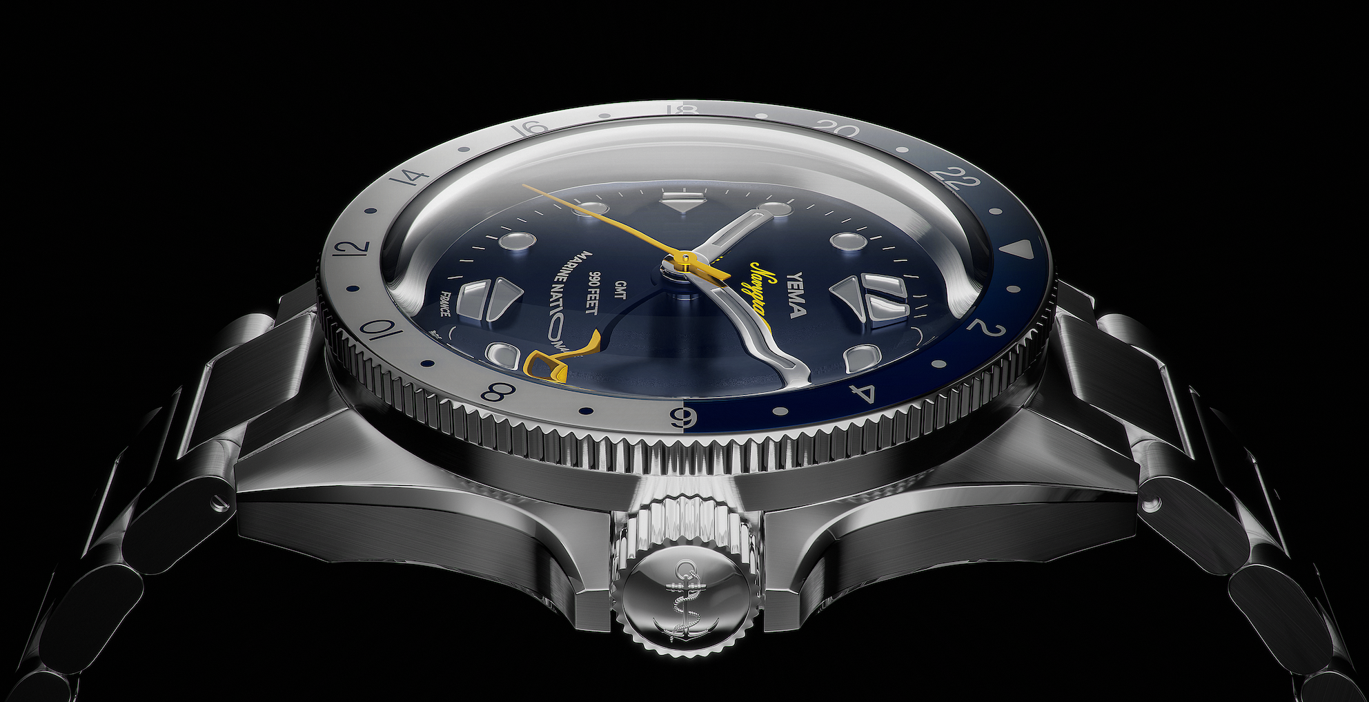 YEMA(イエマ)はスイス国境に近いフランスのジュラ地方で1948年に創設された時計ブランドです。60年代に当時としては驚異的なスペックである300m防水のダイバーズウオッチ“スーパーマン”、レガッタタイムを搭載した200m防水のクロノグラフ“ヨッティングラフ”など、ブランドアイコンとなるモデルを次々とリリースし、スポーツウオッチの分野でフランスを代表するブランドとなりました。