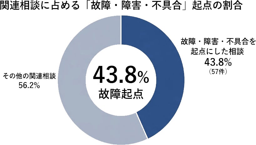故障・障害・不具合を起点とした相談は57件、関連相談の43.8%。