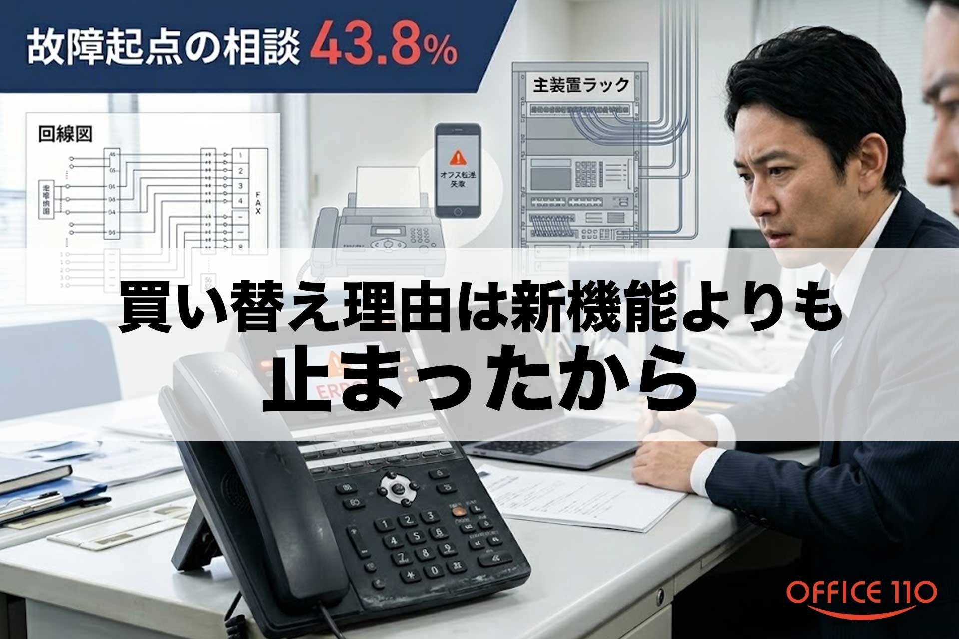 ビジネスフォンの買い替えは、機能追加や設備更新の文脈で語られがちです。一方、実際の相談現場では、故障や不具合が発生した後に検討が始まるケースが少なくありません。OFFICE110 は、蓄積された相談記録を対象にAIによるデータ分析を行い、買い替え需要の起点を検証しました。