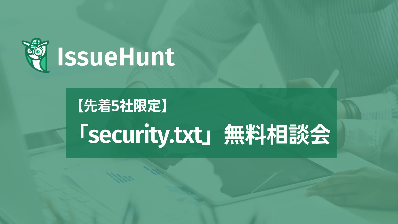 バグバウンティプラットフォーム等を提供するIssueHunt株式会社が、先着5社限定で「security.txt」導入に関する無料相談会を開催