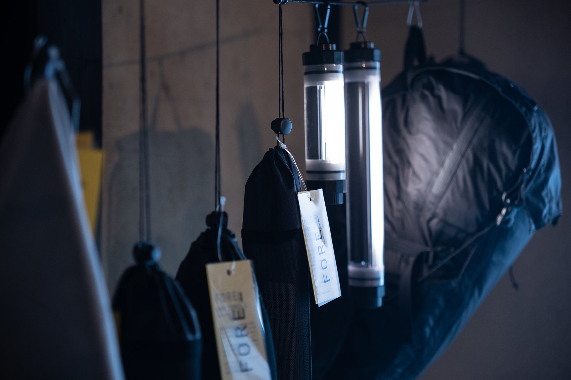アウトドア用具のようにも見えますが、身軽に旅をしたり、旅先で仕事をしたり、時には旅先の自然でちょっとした外遊びを楽しむための、いわば「軽くて遊び心のある出張道具」。健やかなワークライフバランス(健やかな公私混同)を保つための必携アイテムです。開発メンバーの趣味だった「ウルトラライト出張パッキング」によって発見された様々なアイデアが形になっています。