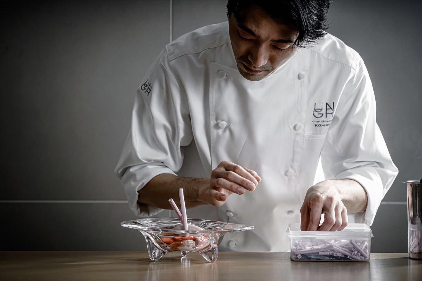 福井県出身。220年の歴史を持つ和菓子屋【昆布屋孫兵衛】を実家に持つ。幼少時はあまり甘い物が好きではなかったものの、妹がくれた【オーボンヴュータン】のスイーツに感動する。その後【オーボンヴュータン】や【ピエール・エルメ サロン・ド・テ】でフランス菓子の基礎を学ぶ。2012年には渡仏し、【リエデレ】や【ラトリエ・ド・ジョエル・ロブション】にてデセールを担当。2019年に【UN GRAIN】のシェフパティシエに就任。