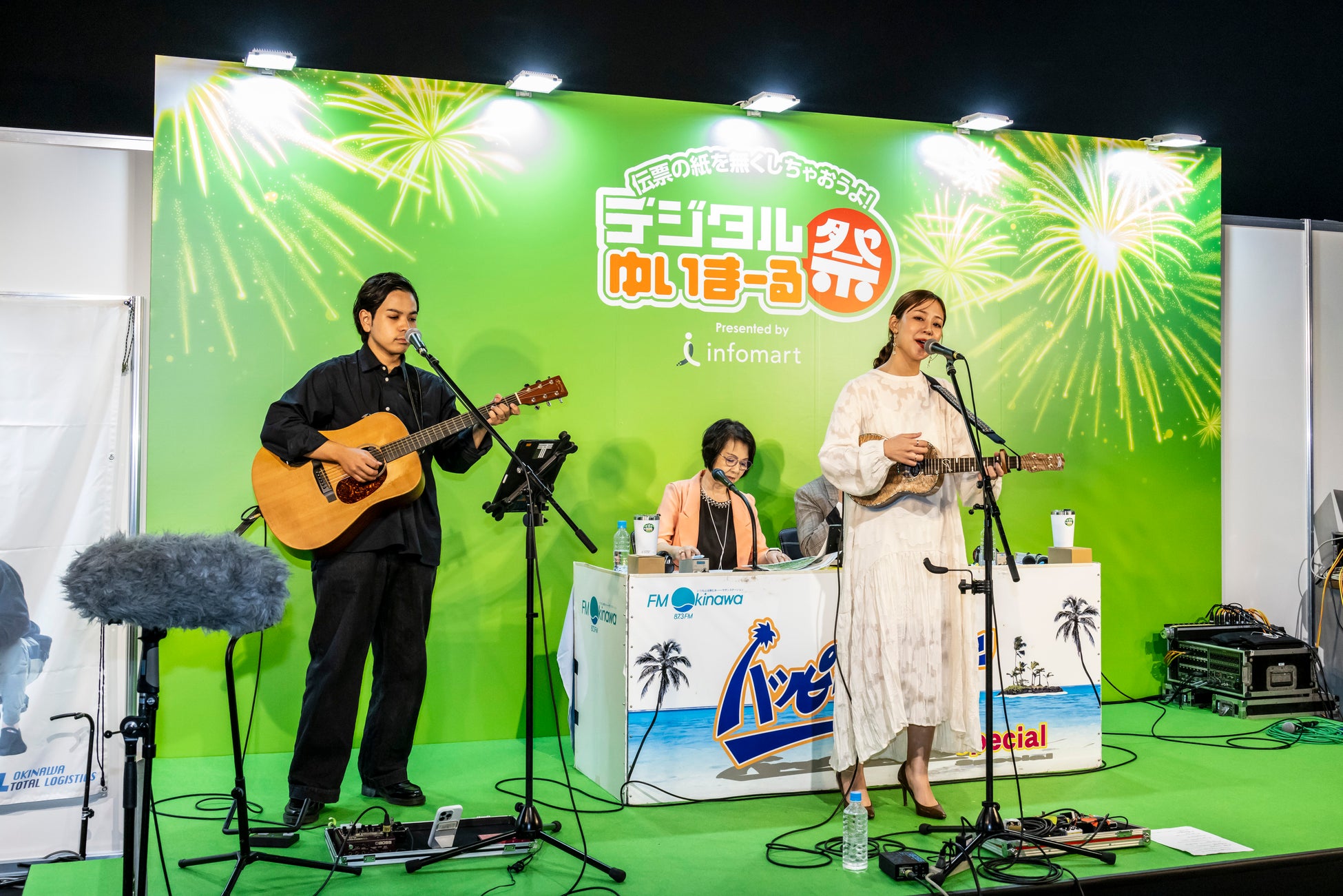 1階特別ラウンジでは、ダイヤモンドスポンサーの1社である株式会社インフォマートがステージを組み、「デジタルゆいまーる祭 Presented by informart」を開催。2日間にわたり、エフエム沖縄で放送中の、パーソナリティ・多喜ひろみさん、伊藝梓さんによる人気番組「ハッピーアイランド」のお出かけ放送をはじめ、同社のCM『デジタルゆいまーる祭』に出演する魅川憲一郎さん、護得久栄昇さんらによるステージが開催され、常に会場を盛り上げていました。 同会場では、ハイサイ探偵団の「ハイサイワールド」やカフェブースなどもあり、笑顔つながる楽しい企画を多数実施しました。