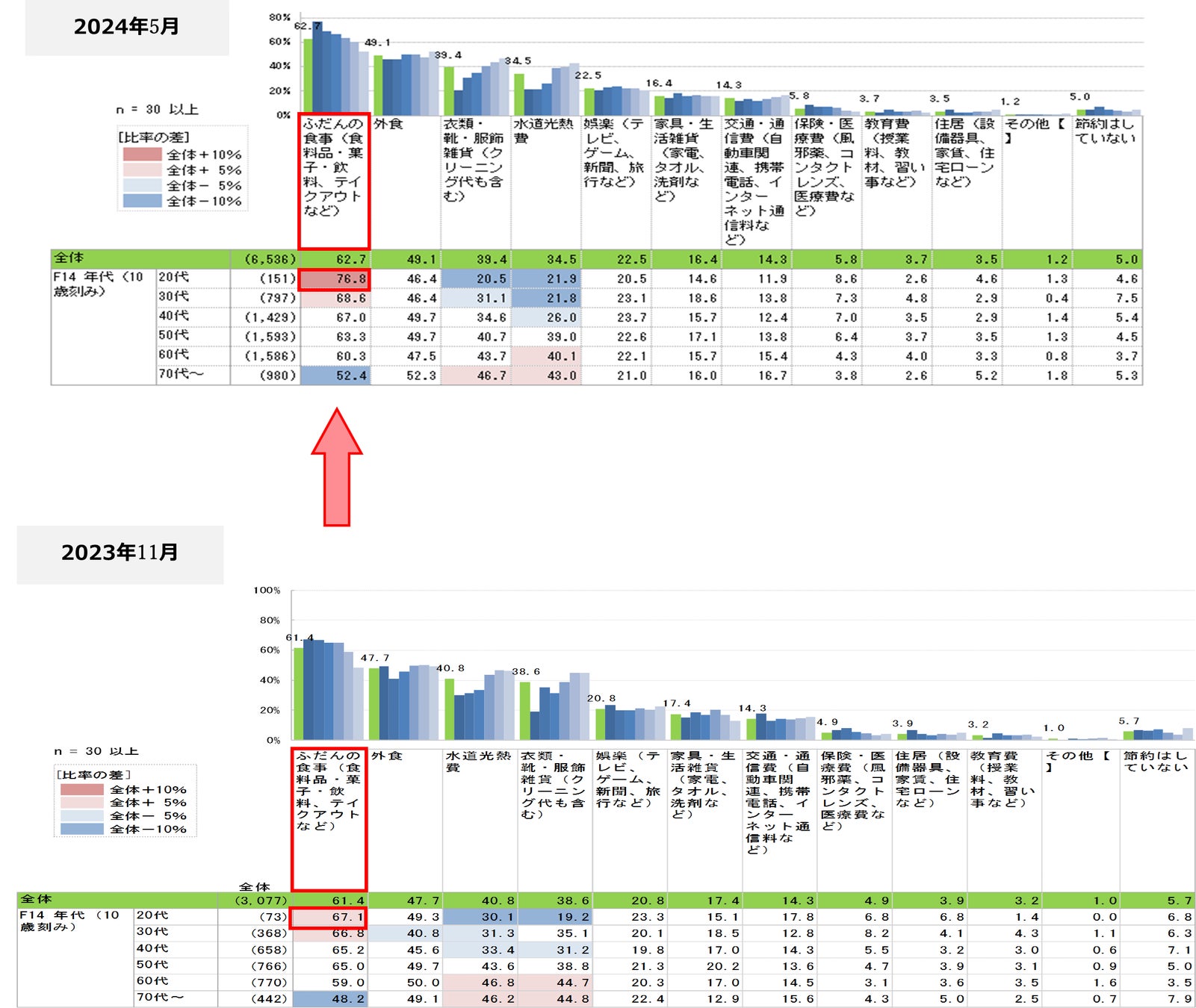 ✓食費について、「食費は今まで以上に節約したい」と感じる20代が13.7%増加 ✓商品の価格だけでなく、コスパ・グラムあたりの価格を見て“安さ”を判断していることが判明