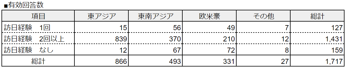 ・有効回答数:1,717(東アジア:866、東南アジア:493、欧米豪:331、その他地域:27)