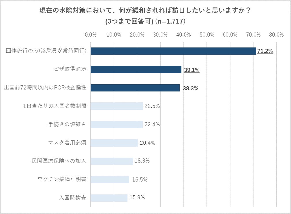 ■団体旅行、ビザ取得、出国前PCR検査の緩和が上位を占める