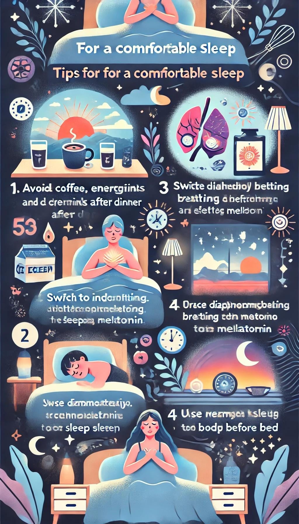 (1)コーヒーやエナジードリンク、アイスクリームなどは、内臓を冷やす原因となり、睡眠の質に影響を与えるので、夕食後は控える