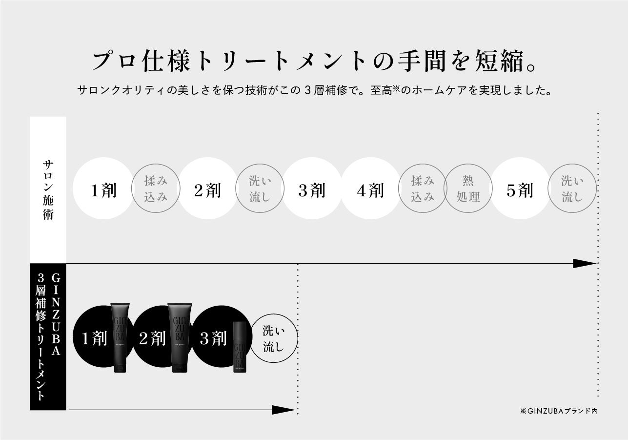 「GINZUBA 3ステップ トリートメント」は、“プロ仕様で至高(※)の指通り”を叶える新発想の「3層補修トリートメント」。