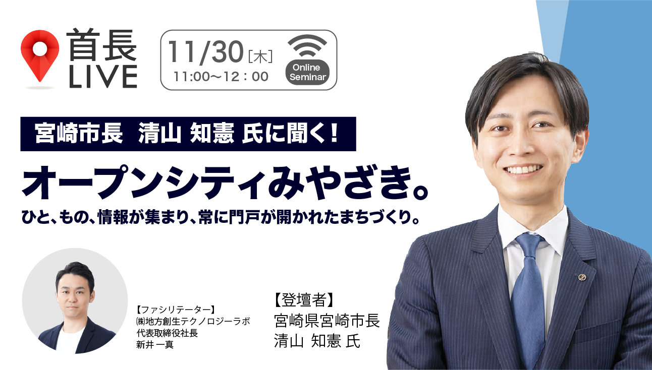 地方創生テクノロジーラボでは、さまざまな⺠間企業・地方⾃治体・教育機関・VCなど所属の異なる⼈々が集まる共創の機会を創出し、4者が連携した地域課題解決の実現を⽬的としたオンライントークイベント「⾸⻑LIVE」を開催します。