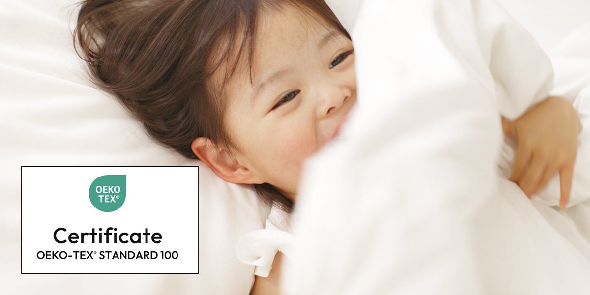 プリマロフト®の布団は、1日の中で肌に触れる時間が長い布団なので、高い安全性と信頼性を確保したい、という思いから繊維製品の国際的な安全基準「エコテックス・スタンダード100」規格を取得した工場で生産しています。