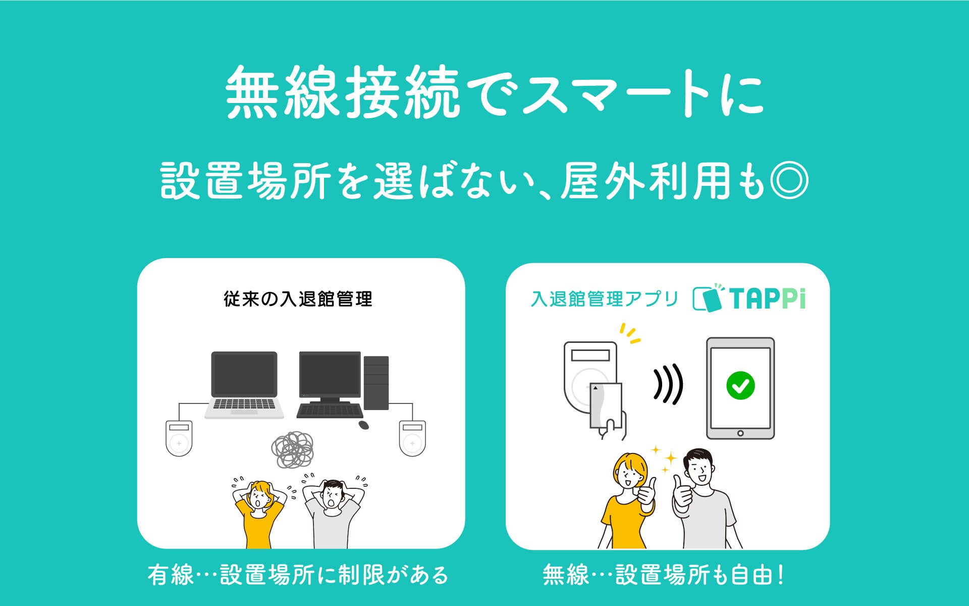 無線接続のICカードリーダーを使用するため、端末の設置場所の制限が緩和されます。