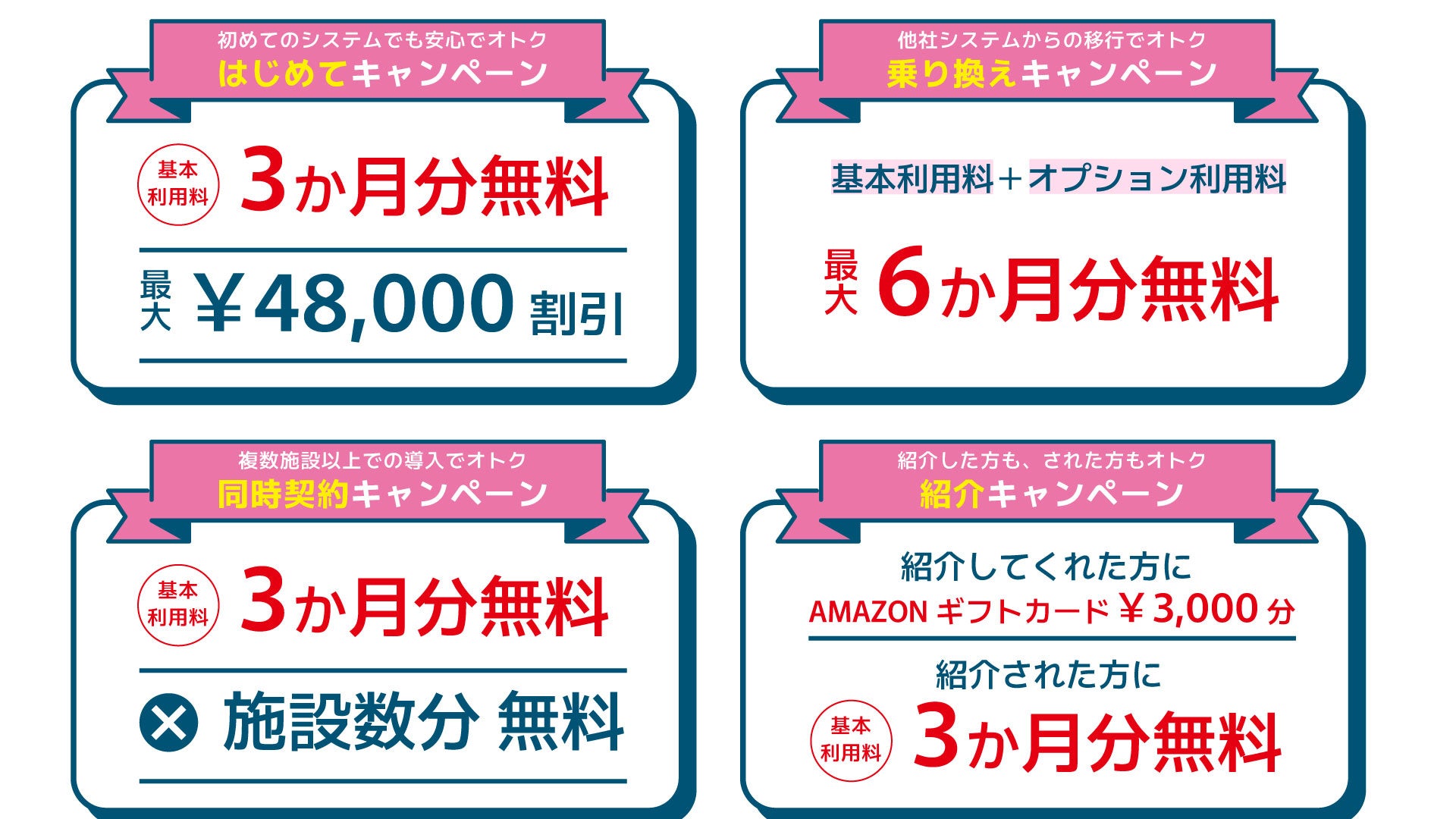 本キャンペーンは、"導入のしやすさ”を第一に考え、『スクール事業者様のデジタル化を応援する』のコンセプトに基づき、導入時にかかるスクール事業者様の業務負荷やコスト負担を軽減した内容となっております。