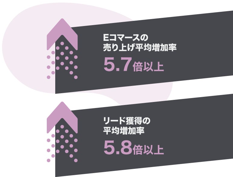 これらのサービスにより、Eコーマスの売り上げ平均増加率は平均5.7倍以上、リード獲得の平均増加率は5.8倍以上と、高い効果を出すことが可能となります。