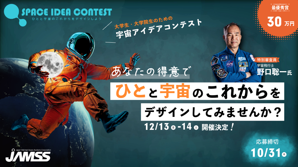宇宙飛行士・野口 聡一氏が特別審査員に。優秀グループには特別な宇宙体験も。全国の大学生・大学院生を対象とした宇宙のアイデアコンテストの応募受付は2024年10月31日(木)まで。