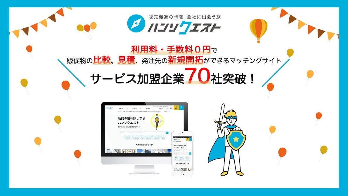 国内唯一の販促特化型ビジネスマッチングサイト『ハンソクエスト』、加盟企業が70社を突破!サービス開始から4ヶ月で達成