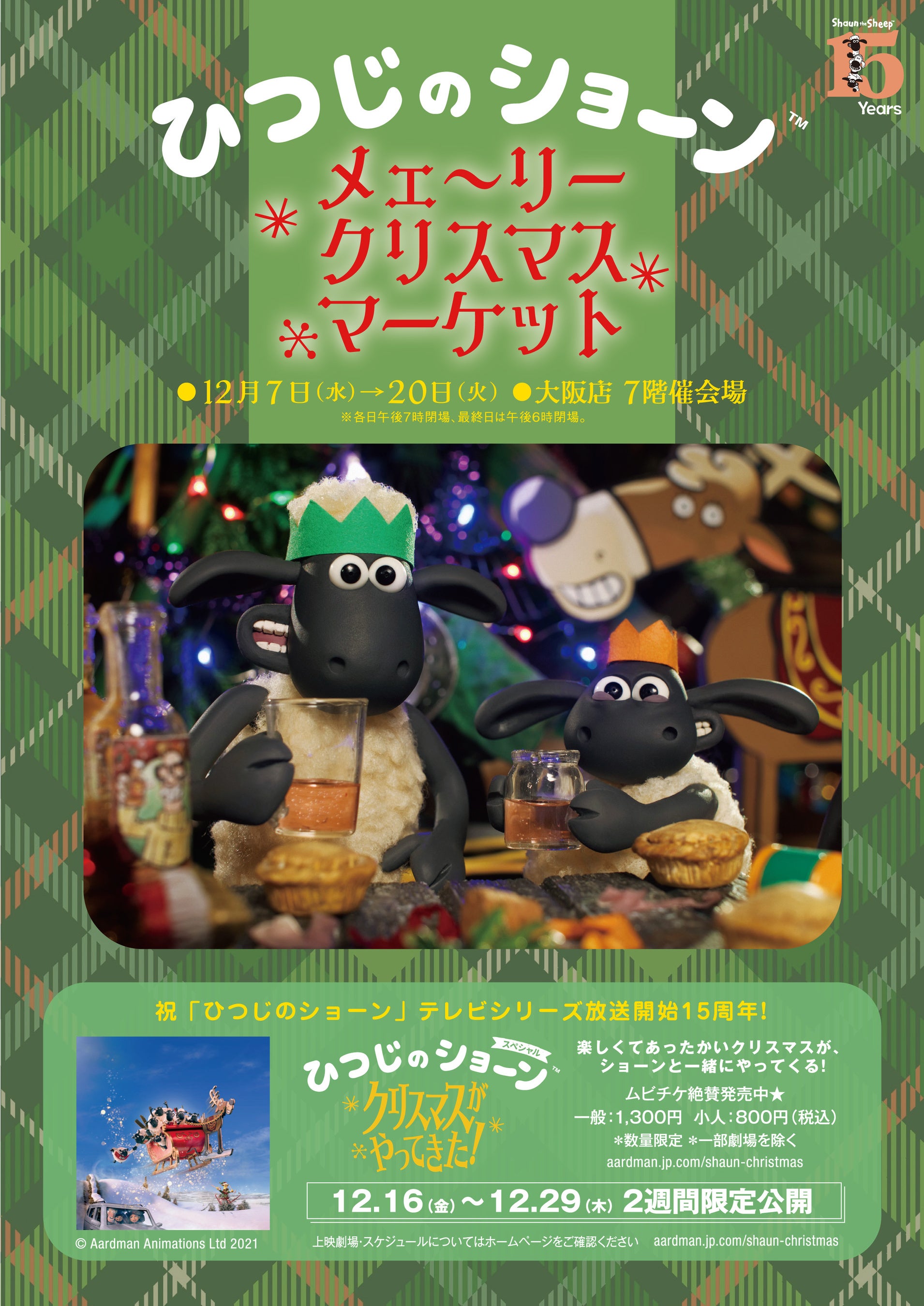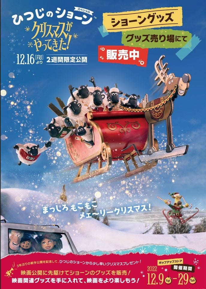 映画公開を記念して、大阪タカシマヤでは12/7(水)~12/20(火)の期間中、クリスマスに向けた特別催事「ひつじのショーン メェ~リークリスマス・マーケット」を実施いたします。