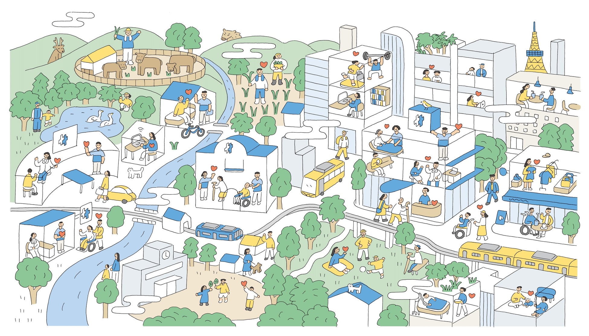 東京・大阪・徳島などを中心に100以上の病院・介護施設を展開しています。「じぶんを生きる を みんなのものに」をミッションに、一人ひとりの「じぶんを生きる」を支える医療福祉の提供を行っています。