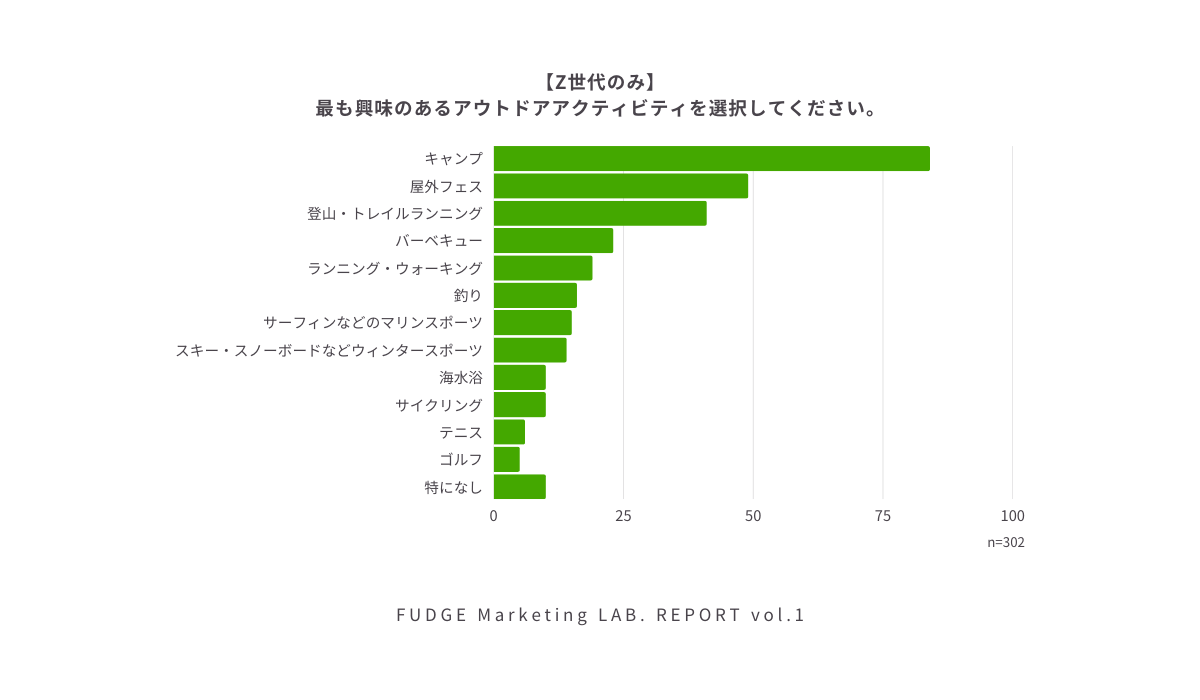では、Z世代は具体的にどのようなアウトドアアクティビティに興味をもっているのでしょうか。