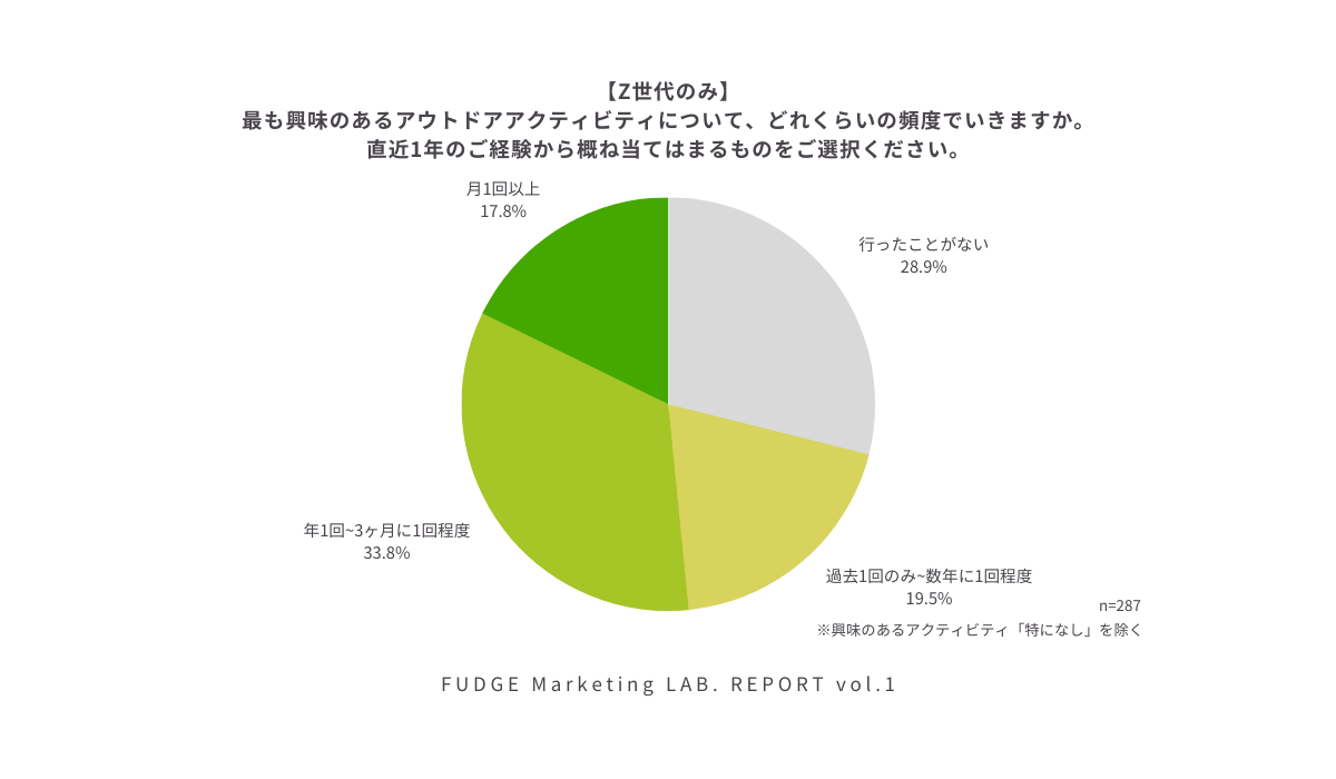 アウトドア時間の増加がみられたZ世代。そんなZ世代についてさらに深掘るため、以降の設問はZ世代の回答にフォーカスして集計しています。
