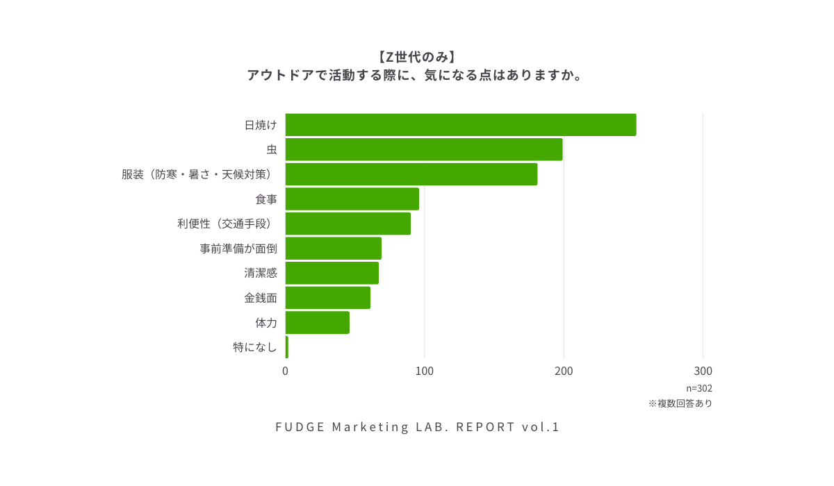4.Z世代がアウトドア活動の際に気にするのは「日焼け」「虫」「服装」