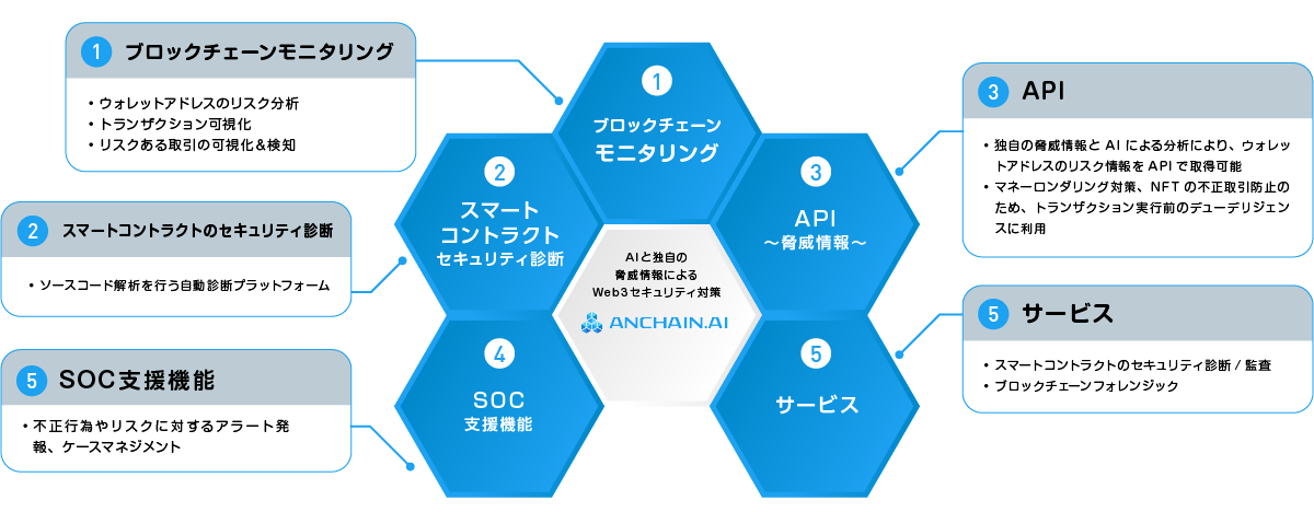 Web3サービス、サイバーセキュリティに関する実績と経験、AI を活用したリスク分析エンジンを用い、Web3のデジタル資産の将来を保護することに注力しています。